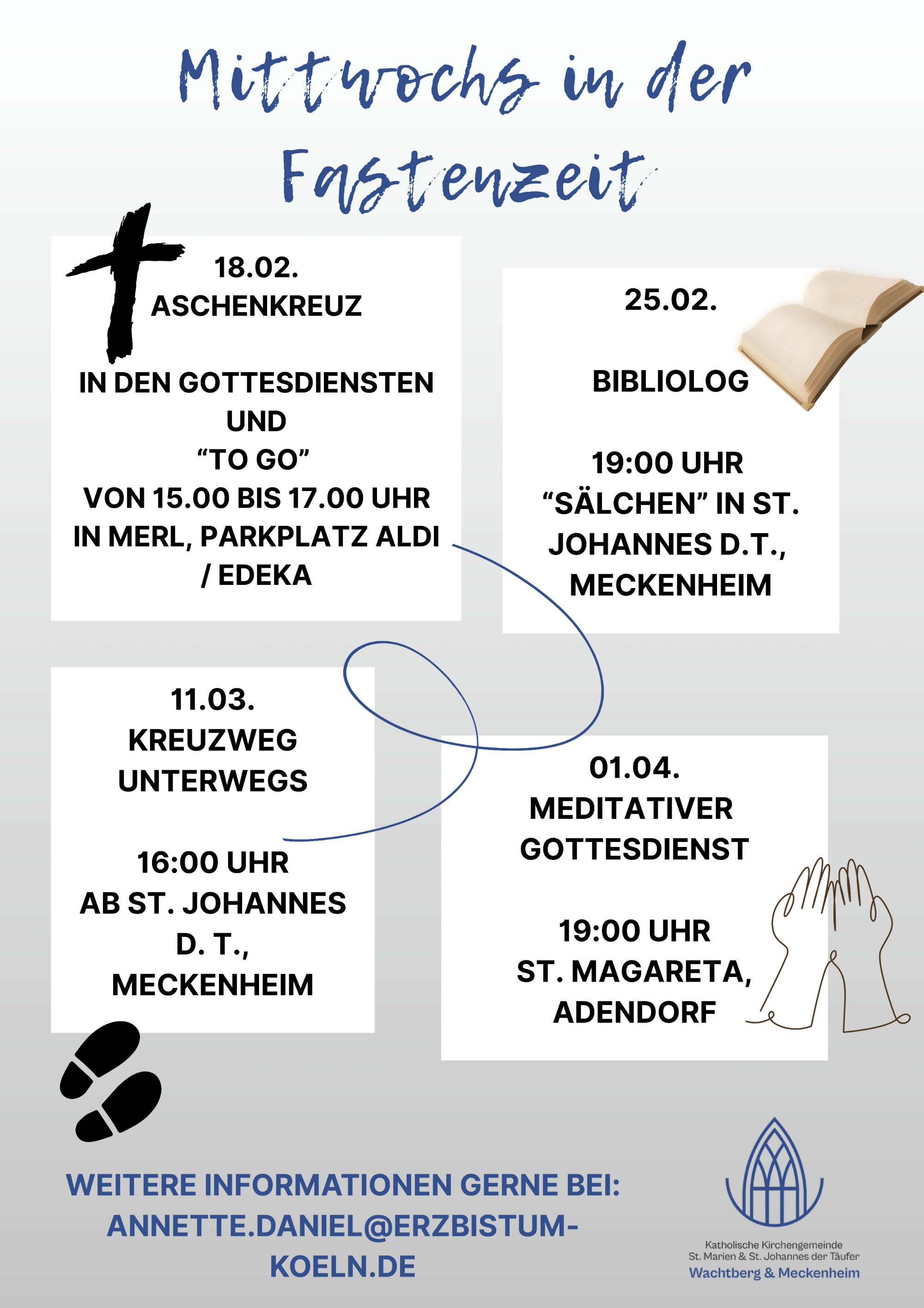 Vier unterschiedliche Angebote für alle Interessierte, in der österlichen Bußzeit einen Moment innezuhalten.