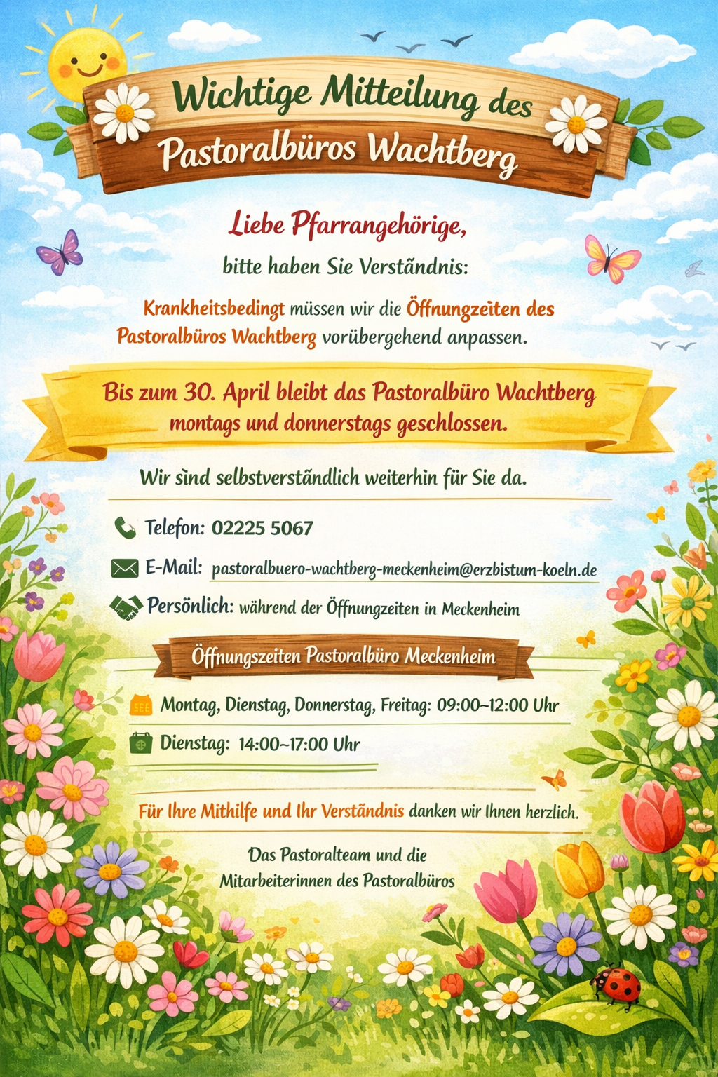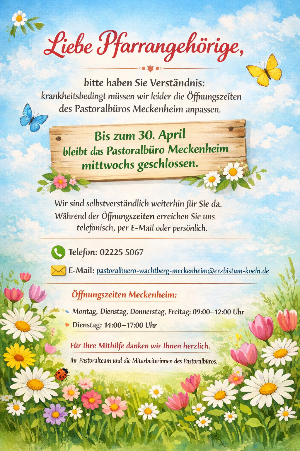 Bitte beachten Sie die geänderten Öffnungszeiten für den Monat April.